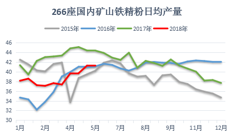 國(guó)內(nèi)礦方面,5月份環(huán)保限產(chǎn)影響進(jìn)一步減弱,開(kāi)工率繼續(xù)提升,但整體提升空間有限。截止至5月25日,全國(guó)礦山產(chǎn)能利用率為63.9%,環(huán)比四月整體上升2.4%,庫(kù)存234萬(wàn)噸,環(huán)比整體降9萬(wàn)噸。整體看5月礦山企業(yè)庫(kù)存連續(xù)下降,出貨情況較好。
