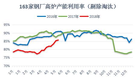 短期看6月上合峰會(huì)對(duì)周邊企業(yè)生產(chǎn)暫無(wú)進(jìn)一步影響,不排除后期是否有政策影響企業(yè)排產(chǎn);本周調(diào)研情況來(lái)看,周中臨時(shí)檢修情況有所增加,多地區(qū)出現(xiàn)爐礦不順現(xiàn)象,6月份來(lái)看高爐復(fù)產(chǎn)已進(jìn)入瓶頸狀態(tài),開(kāi)工率提升空間較小,鐵水增量有限。