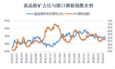 5月整體走勢(shì)來(lái)看,內(nèi)礦價(jià)格表現(xiàn)堅(jiān)挺,以唐山區(qū)域?yàn)槔?月環(huán)比小幅上漲10-20元/噸,反觀進(jìn)口礦港口現(xiàn)貨,主流粉礦全月整體下跌15元/噸左右。整體看內(nèi)礦企業(yè)開(kāi)工仍然受限,預(yù)計(jì)短期優(yōu)質(zhì)資源價(jià)格偏強(qiáng)運(yùn)行。